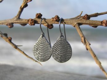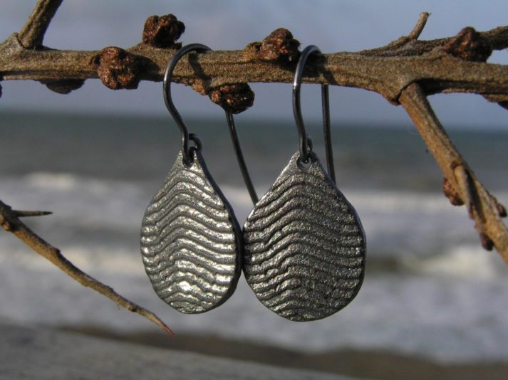 Dråbe øreringe i oxyderet sølv – lavet af Nynne Kegel – Loenstrup Smykke Design