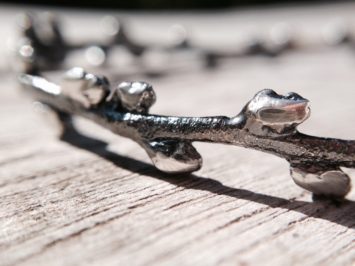 Havtorn armring i oxyderet sølv – lavet af Nynne Kegel – Loenstrup Smykke Design