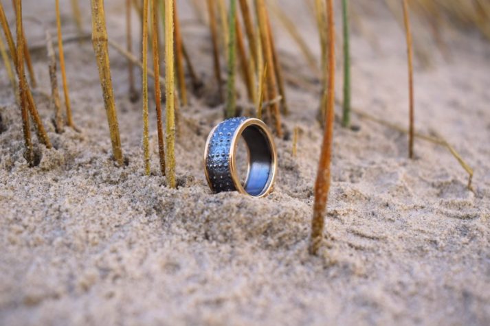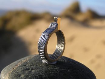 Søpindsvin ring i oxyderet sølv med 14k guldkant – lavet af Nynne Kegel – Loenstrup Smykke Design