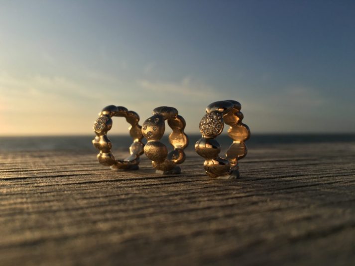 Tidevand ringe i guld – lavet af Nynne Kegel – Loenstrup Smykke Design